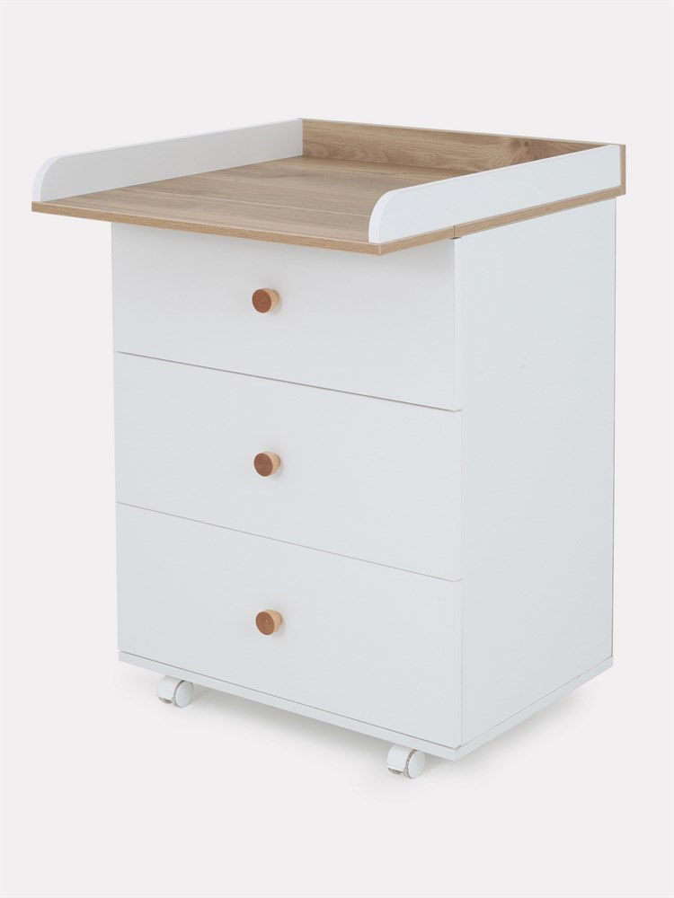 • комод дополнен бортиком, превращающим его в полноценный пеленальный столик. Бортик можно установить в двух положениях - слева и справа.