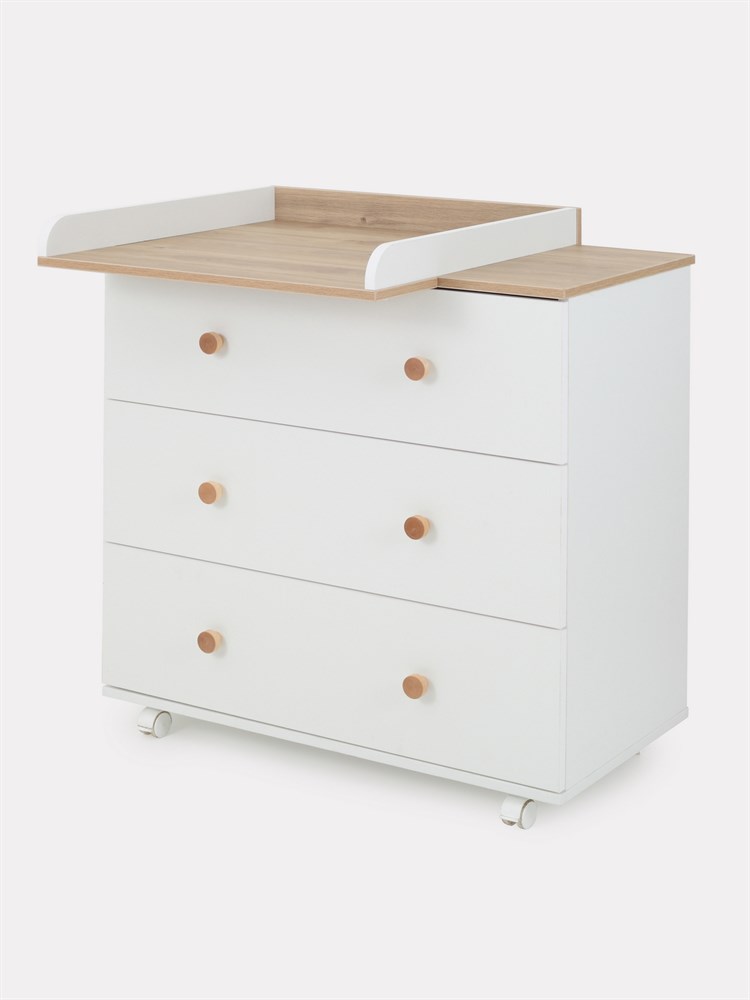 - комод дополнен бортиком, превращающим его в полноценный пеленальный столик. Бортик можно установить в двух положениях - слева и справа.