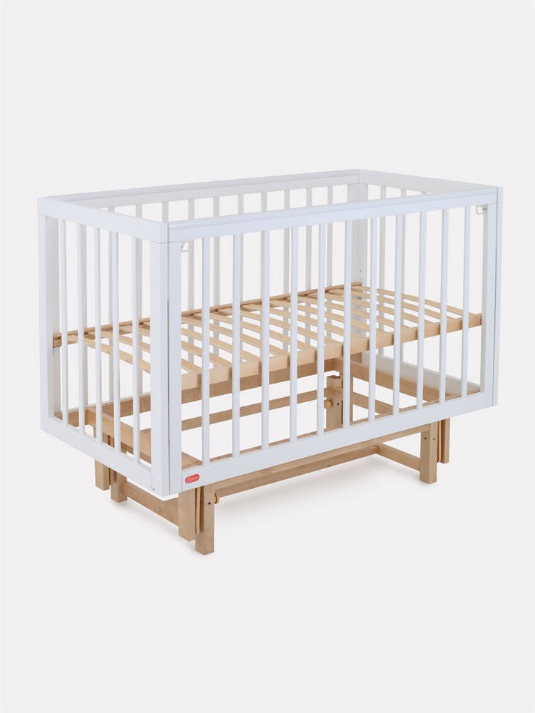 • чтобы обеспечить спокойный сон маме и малышу, боковое ограждение можно легко снять нажатием двух кнопок (курковый механизм) и придвинуть кроватку к кровати родителей, а когда кроха подрастет кроватка превращается в уютный диванчик