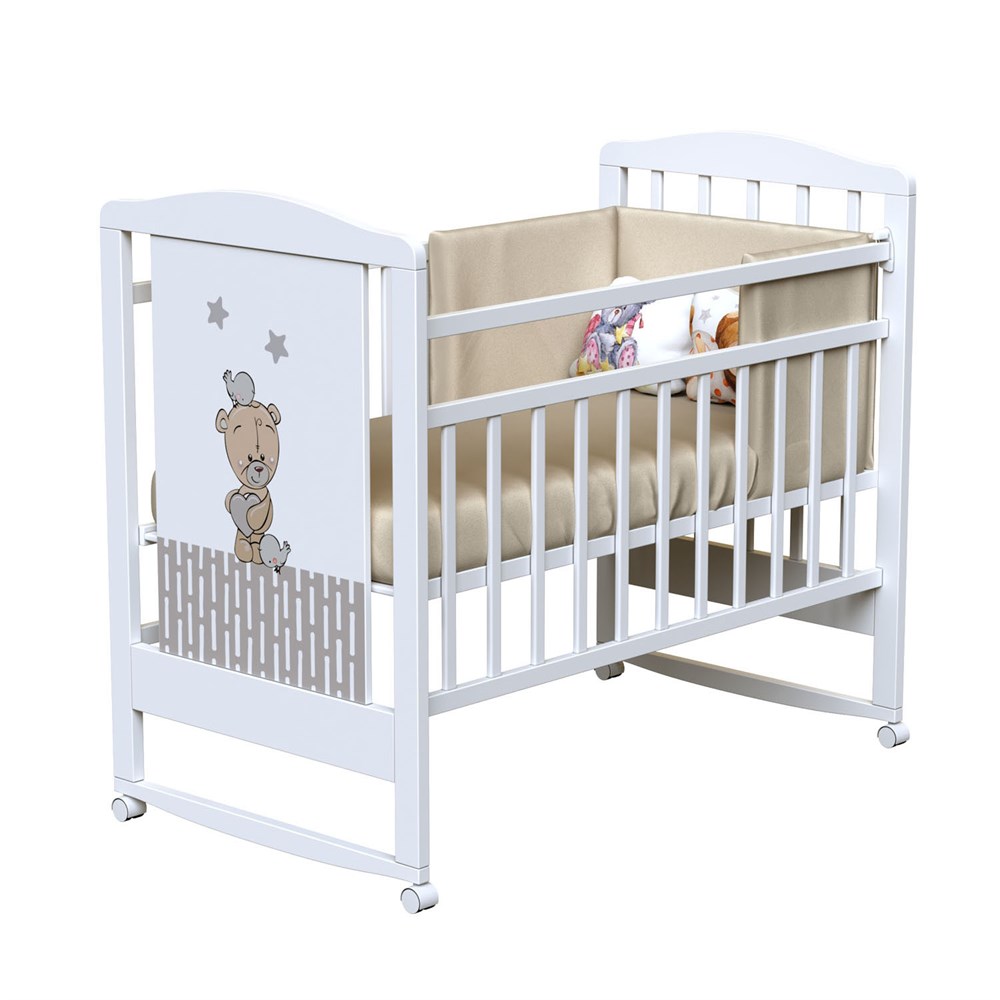 Детская кроватка ВДК LOVE ME с принтом в виде очаровательного мишки, подойдет как для мальчиков, так и для девочек. Модель предназначена для деток с рождения и до 3х лет. У кровати стандартный размер ложа (120х60), поэтому вы можете подобрать в нее любой матрасик. У модели есть удобные колесики для комфортного перемещения по квартире, а также поперечный маятник, который будет мягко укачивать кроху перед сном.