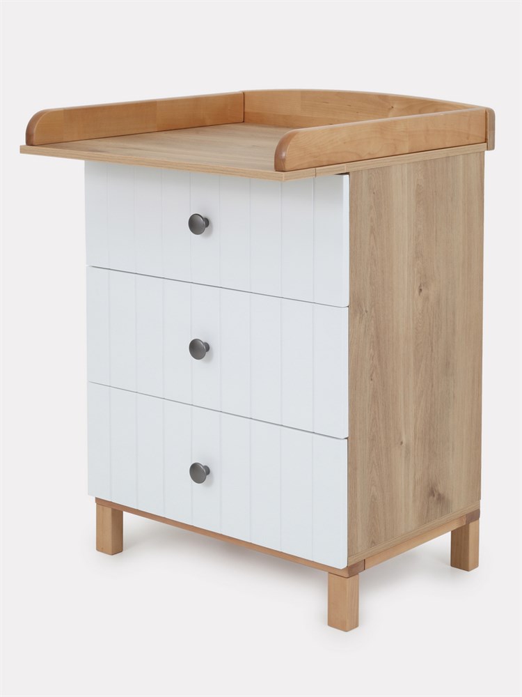 Пеленальный комод Bamboo (всего 64 см в ширину) идеально впишется даже в узкое пространство! Эргономичная модель дополнена съемной накладкой для пеленания, усиленными телескопическими направляющими, фасадами, украшенными вертикальной фрезеровкой.